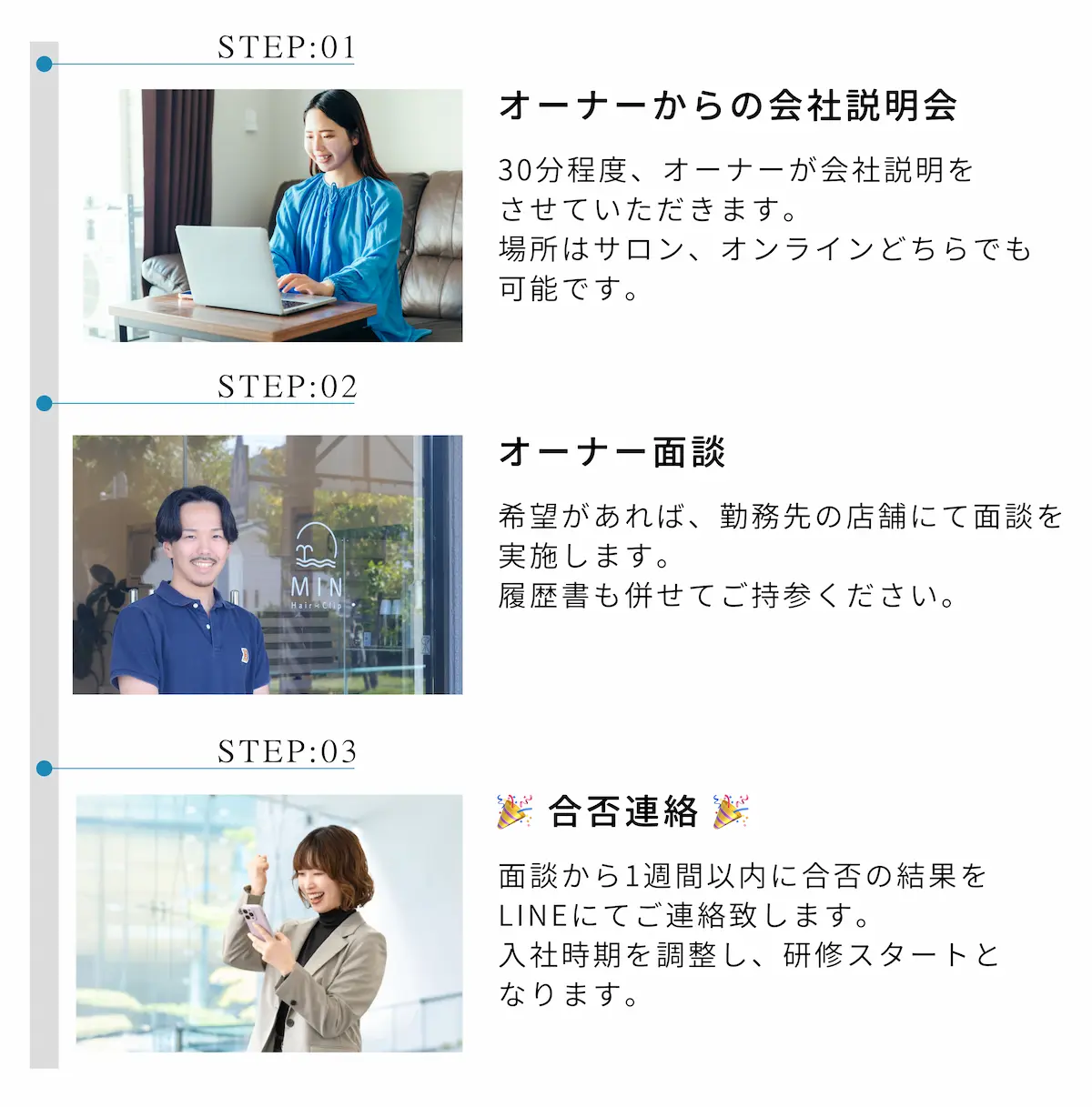 あなたもはじめの一歩を踏み出せば、きっと理想の自分に近づけます。ご応募心よりお待ちしています。